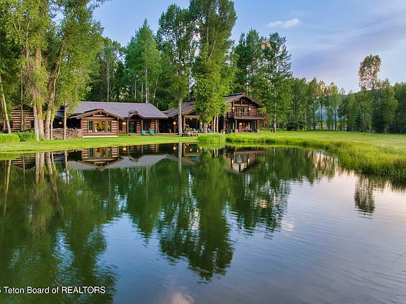 RR Lodge is a 21.18-acre riverfront sanctuary where water shapes every moment of living. Set near the end of Ely Springs Road, the property offers uncommon privacy, surrounded by flowing channels of Ely Springs Creek and centered around a reflective spring-fed pond that wraps the home in mirrored light. A quarter mile of private Snake River frontage anchors the western edge, while the Grand Teton rises to the northa rare alignment of water, mountain, and seclusion just minutes from Jackson. With a handcrafted 5,906 sq ft lodge-style residence, guest house, studio, barn, and a restored trout habitat, this property is defined by its water, privacy, and sense of place.