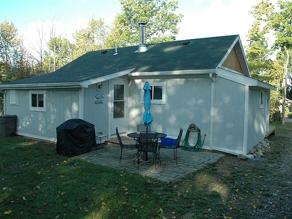 Two acres (many trees) with limited water view, 2 bedrooms, 1 - 3/4 bath, 689 sq ft. on crawl. Large 12'x16' shed three years old. New porch and pergola, new siding and gutters (2016). New kitchen. Many new lighting fixtures and fans. Underground electric service. Wired for cable and internet, electric base board heat (natural gas is available), wood burner stove, new electric hot water heater, fridge and stove. Newer well and septic. Two miles from Suttons Bay Village, Marina, Beach and Tart trail. Fifteen minute drive to Traverse City, Sleeping Bear Dunes, Fish Town, and Leland.