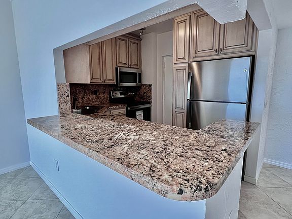 Don't miss your opportunity to own a beautiful quaint condo on the top floor of a Boca Condo building. This 2br 2ba condo boasts amazing views over Boca. Granite counter tops, custom cabinets and brand new stainless appliances compliment the kitchen. Tile throughout for easy maintenance and a fresh coat of paint as a final touch.
