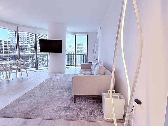 Spectacular FURNISHED 3BD/3BA unit with wraparound balcony, with stunning panoramic water views, Brickell &Coconut Grove area. Top-of-the-line finishes, quartz countertop, tile-floor throughout, double sink in the masterbathroom, washer & dryer. This great building in Brickell offer elite services & amenities, luxurious shopping, andfine dining. Indulge in a resort Lifestyle with Theater, Club House, Roof Top Pool, Jacuzzi, sauna, private massageroom, kids playroom, and Green Space for Gardening, located in the same building state-of-the-art Equinox FitnessClub and Spa located at the ground level. SoulCycle indoor cycling studio. Across the street from Brickell CityCentre and steps away from Mary Brickell Village