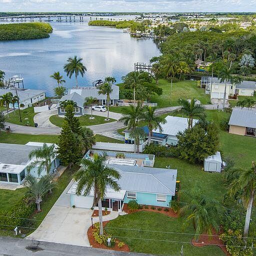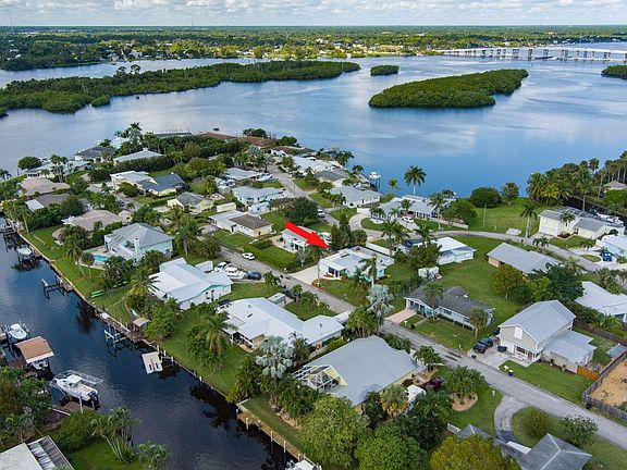 LOCATION! LOCATION! LOCATION! WATERFRONT COMMUNITY! CUTE & COZY MID-CENTURY POOL CBS HOME! NO HOA! YOU will love to snuggle here. Relaxing front porch. Home will appeal to the ''artsy'' personality or boater. Located in a waterfront community. All homes on the parameter are on deep water. Boat launch. Home is a 2/2/1 with additional parking for boat/RV. Higher elevation. Home is located close to schools, shopping downtown, restaurants & I-95 & turnpike access. Newer kitchen & baths. Fenced pool. Large Yard & 2005 10 x16 shed. Garage is currently used as a den/office-with garage door intact. 2003 Metal Roof. Central A/C. NO Heat Square D Electrical Panel. City Water. Garage & Utility both have additional A/C window units. NO FLOOD INSURANCE REQUIRED FOR MORTGAGES.