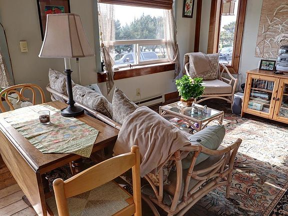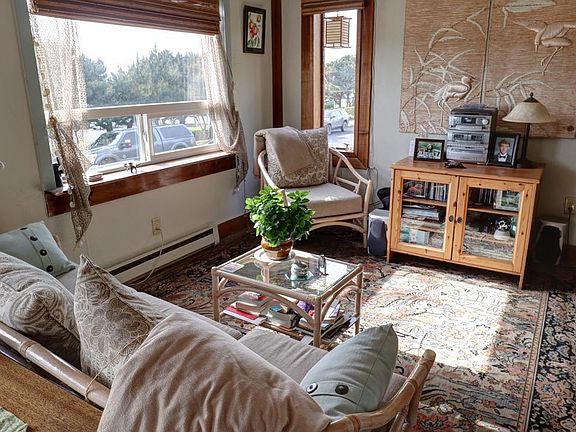 Location, Location, Location! This home which is located across from the Performing Art Center and the City Park is absolutely charming! Panoramic Ocean views from the Master Bedrooms wall of windows! The upstairs master bedroom/bath has been remodeled and there is a low step in shower. The main level also has an enclosed porch. The lower level has a little sitting area and bedroom, with an entrance from the outside. The back yard is very private and the storage shed with a little work would be a great space for a studio or potential Auxiliary Dwelling Unit (Check with the City for building permits and usage) Zoned Commercial so there are many potential uses. Walking distance to Nye Beach, shops, grocery store, and best of all it's only 2 blocks from the beach