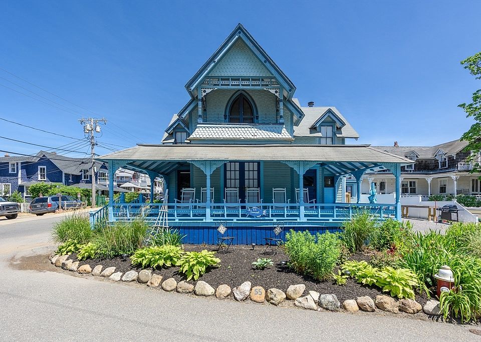 Modernized 5 bed, 3 full bath Victorian in the heart of Downtown Oak Bluffs. Steps to restaurants, shopping, harbor, ferries and beaches. Accommodates 10 guests. Easy breezy outdoor living, dining, bluestone patio and BBQ grill. Relax on the covered porch surrounded by a lush flower garden or unwind in the outdoor shower. Updated stone and stainless kitchen. Formal dining for eight. A/C, WIFI and hardwood throughout. First floor bathroom and bedroom. Updated bathrooms. Fans and flatscreen TVs in each of the five-guest rooms. PRICES REFLECT PRIME SUMMER WEEKLY RATES. Weekly Prime Rates $14,000-$17,000/wk. Available for 3-Night Weekend Fall/Spring. Tax, Cleaning and Deposit required. INQUIRE.