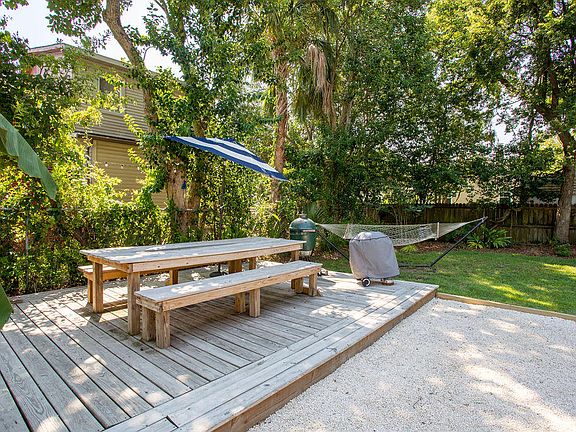 A charming bungalow in one of Charleston's most desirable neighborhoods. This historic, three bedroom Craftsman was built in 1938 and has been updated, but remains as charming as it was 80 years ago! Bright and airy, the large living and dining room give this home a beautiful open floor plan. Enjoy lazy evenings on the screened-in front porch. The large backyard boasts a dining deck and a gorgeous french-style stone patio surrounding a fire pit. Mature trees (including a banana tree) and a fenced in yard offer ample privacy and a haven for pets. With a yard like this, new owners could even expand the footprint of the home and still have room to play. Brand new windows and a new roof are just two of the many buyer-friendly aspects of this lovely abode. Between being within walking distance of the Brewery District, some of Charleston's finest Upper Peninsula restaurants, and the friendly neighbors, there isn't much to worry about on Sans Souci... the street of no worries!