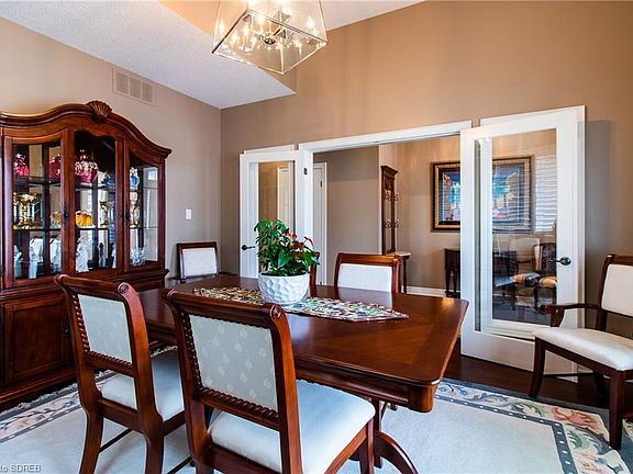 Has All The I Wants! Located in the prestigious Dover Coast Development with resident's access to the lake with sun deck and dock. Enjoy member discounts at David's Restaurant, Elements Spa, and golf. Benefits include snow removal and grass watering and cutting, and use of dog park and pickle ball court. This beauty is loaded with upgrades including, maple hardwood floors, granite countertops in kitchen, upgraded kitchen cabinets with glass inserts and pull out drawers, built-in appliances, decorative glass backsplash, butler's pantry with wine cooler, formal dining room with glass doors, cathedral ceiling in living room accented by a three sided fireplace and amazing wall of windows, master bedroom boasts a walk in closet and an amazing ensuite with quartz countertops and Spanish tiled walk-in shower. The upper level is finished off nicely with a guest bedroom and a full bathroom with an ensuite privlege, relax in the upper family room with an abundance of natural light. It's time to start living the dream! You deserve it! Call Today!