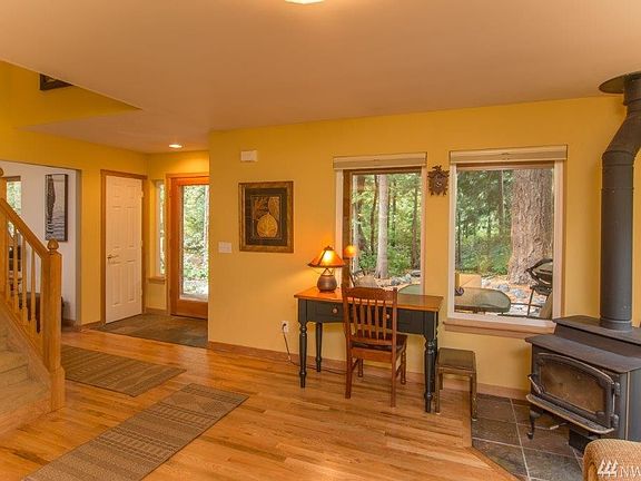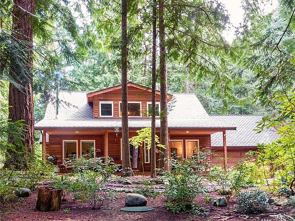 Kala Point custom craftsman on large, parked out lot w/several large firs & cedars. Fully covered front porch w/recessed lighting greets you. Oak floors, efficient wood stove, new appliances, two master bedrooms w/ensuite baths, cozy first floor den, cedar siding, wood trim & large two car garage. Seperate family & living rooms create fun entertaining options. Fenced back yard to keep your friends safe. Large kitchen w/tons of counter space also w/two pantries. Community trails, pool & beach.