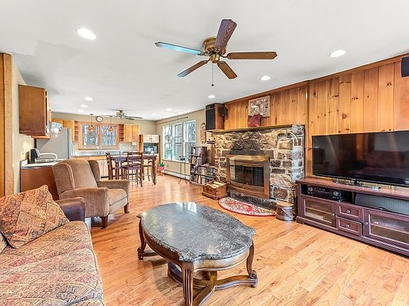 Glorious/Picturesque Mountain View! Amazing Home Is One Of A Kind! Fall in love with the scenic view, charming open floor plan, 22x18 front open porch, view is breathtaking, paver walkway, wrap around driveway can accommodate 10 plus cars, nature lover's delight, vegetable garden, almost 4 acres of tranquility & privacy, enter into this immaculate home & be impressed w/the attractive wood burning Stone Fireplace, recessed lighting, glistening hardwood flooring throughout, Newer Anderson Windows, Stainless Steel Convection double oven, double SS sinks, Laundry Room, Massive Bath with double sinks, Finished Basement w/bonus room, workshop, Ceiling fans in all rooms, 1,000 gallon water tank f/irrigation, & deck 14x16, French Drain. Paradise You Can Call Home! Fall In Love At First Glance!