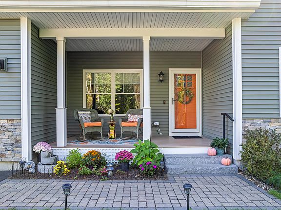 Step inside to an inviting open-concept living area anchored by a cozy gas fireplace, perfect for gatherings or quiet evenings at home. The chef's kitchen is complete with quartz countertops and a center island, allowing the cook to interact and enjoy guests while preparing delicious meals! The spacious living space flows seamlessly to a charming screened porch and a private stone patio, ideal for enjoying serene privacy along with Maine's beautiful seasons. This home boasts abundant natural light throughout, with windows dressed with light curtains and motorized blinds.