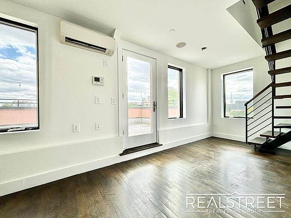 *New Stunning PENTHOUSE 1 Bed Duplex 2 Bath in Prime Bushwick with Massive Private ROOF DECK!* Welcome to 55 Stanhope, a gorgeous multi family building in the heart of Bushwick. This property is close to the J/M/Z train and surrounded by all the bars, restaurants, coffee shops, etc that Bushwick is known so well for. Gym and grocery store are close by as well with a short walk. This extremely spacious 1BD is perfect for a couple or a single person who wants that extra space. On the fourth floor the balcony has direct city views! Available for an immediate move-in. This unit boasts: A spacious living area Modern kitchen with stainless steel appliances and great cabinet space! Queen sized bedroom with balcony access as well Central Ac and heating! Built in bluetooth speakers! Plenty of closet space Laundry room in building! Washer/dryer combo to be added in the unit Roof access Guarantors are welcome!