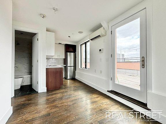 *New Stunning PENTHOUSE 1 Bed Duplex 2 Bath in Prime Bushwick with Massive Private ROOF DECK!* Welcome to 55 Stanhope, a gorgeous multi family building in the heart of Bushwick. This property is close to the J/M/Z train and surrounded by all the bars, restaurants, coffee shops, etc that Bushwick is known so well for. Gym and grocery store are close by as well with a short walk. This extremely spacious 1BD is perfect for a couple or a single person who wants that extra space. On the fourth floor the balcony has direct city views! Available for an immediate move-in. This unit boasts: A spacious living area Modern kitchen with stainless steel appliances and great cabinet space! Queen sized bedroom with balcony access as well Central Ac and heating! Built in bluetooth speakers! Plenty of closet space Laundry room in building! Washer/dryer combo to be added in the unit Roof access Guarantors are welcome!