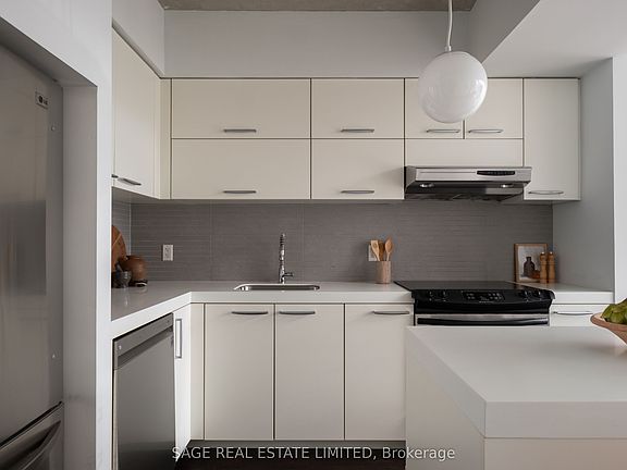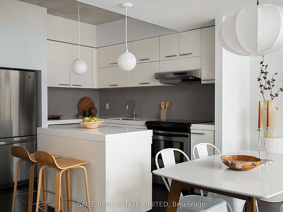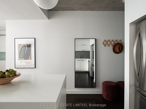Suite 633 - the One you need.Welcome to your sun-drenched hideaway in the heart of King West . Perched inside the exclusive and oh-so-iconic 1 Hotel Residences. Suite 633 isn't just a condo; it's the vibe. A rare blend of calm, class, and cool - the kind of place that whispers luxury without ever needing to shout..Inside, floor-to-ceiling windows flood the space with sunshine - including the bedroom - and your direct south-facing view over Victoria Memorial Square Park means endless sky and greenery.This spacious 767 sq ft one-bedroom features a flowing layout, soaring 9-ft exposed concrete ceilings, and a sleek Poggenpohl kitchen with Caesar stone counters, full-sized stainless appliances, minimalist cabinetry, and a large island perfect for entertaining (or lazy brunches).The oversized bedroom is a serene retreat with park views and a custom walk-in closet. Just outside, the spa-like 4-piece bath features a deep soaker tub and glass walk-in shower - like a boutique hotel, every day.Step outside to your oversized, south-facing terrace - ideal for morning espresso, evening cocktails, or dog spotting.Bonus: This suite comes with two downtown rarities - a parking space and a storage locker.Now, let's talk location. A short stroll takes you to The Well, STACKT Market, and basically every Instagrammable corner of downtown. Some of the city's best restaurants, patios, and late-night spots are right out your door. You've got easy access to the TTC, the Gardiner, and the upcoming Ontario Line, putting the entire city at your feet - whether you're commuting, adventuring, or escaping for the weekend.And because you're living in 1 Hotel Residences, you're spoiled with top-tier amenities:State-of-the-art fitness centre (no excuses now!), Rooftop pool with skyline views, 24-hour concierge, World-class dining just an elevator ride away. When the vibe's this good, it's not just a home - it's the one.