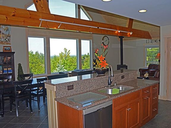 Spectacular westerly views, with beautiful sunsets virtually every peaceful evening! The open, gourmet kitchen and nicely appointed 4 bedrooms and 3 full baths offer versatility, while the home's efficient systems keep energy use in check. Radiant heat, a wood stove, and generator work together to keep the house comfortable through the year. The spacious walkout basement is thoughtfully finished, and the oversize two-car garage offers storage above and room below for a small shop or bench. A real gem!