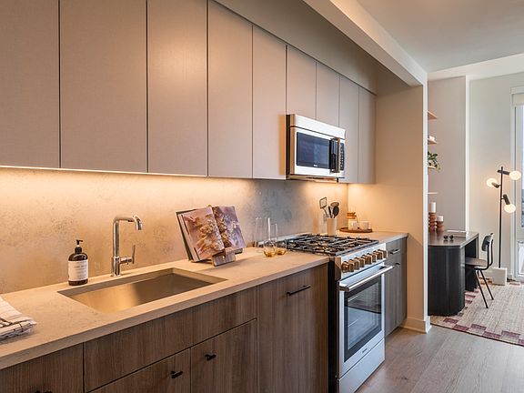 A thoughtfully curated amenity package features a rooftop pool, BBQs, a state-of-the-art fitness club, resident and co-working lounges and more, and is complemented by luxurious extras, including a package room with cold storage, resident event programming, and an exclusive resident mobile app.