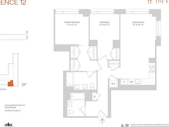 The Suffolk is located off Broome Street in the heart of the Lower East Side with access to an array of exciting dining and shopping options including Essex Market, Target and Trader Joes. Nearby transit includes the F, M, J, and Z lines from the Delancey Street/Essex Street subway station three minutes away, and the M15, M9 and M14A-SBS bus lines, with easy access to the Williamsburg Bridge.