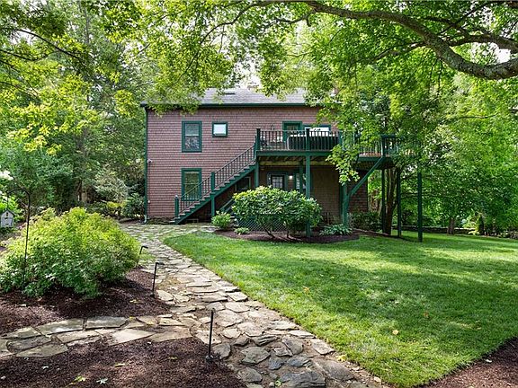 Historic 1850's farmhouse in an extremely rare and private setting just off Indian Ave. Tucked away on a private dead-end street surrounded by stone walls, mature trees, and natural landscaping. This charmingly restored home offers a tranquil setting just 4.5 miles from downtown Newport, 2 miles from Newport National, and a quick bike ride to the beaches. Equipped with 3 levels of living, 5 bedrooms, 3 modern baths, 2 wood-burning fireplaces, and extensive decks providing great outdoor living. The oversized 3 car garage has 2 lofts to accommodate all your storage and nicely frees up space below, and the walkout basement is perfect for a workshop. Property has been tastefully updated and recently received many improvements, including a brand new 6 bedroom septic system this July, new roof 2019, state of the art water softener/filtration system in 2018, cedar siding 2019, updated appliances, refinished hardwood floors this summer, insulation throughout, new oil tank 2019, modern baths, and Anderson Windows.