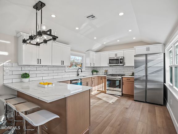 This home should be at the top of your touring list! Totally redone to the studs, everything except the foundation is 2024!!! If you are looking for a perfect condo alternative without HOA fees, plus a huge yard, here it is! This home offers an open concept, so it makes a perfect place for all your entertaining needs! 2 large bedrooms, 2 full baths(main has it's own) gorgeous kitchen complete with a stainless steel appliance package, center island for casual dining, sliders leading to a paver patio and partially fenced large backyard(this area has great soil for any garden enthusiast!!) Great paver driveway for off street parking and only moments to Belford Ferry, train station, GSP and all the Jersey Shore has to offer!! There really is nothing to do but unpack and enjoy for many years!
