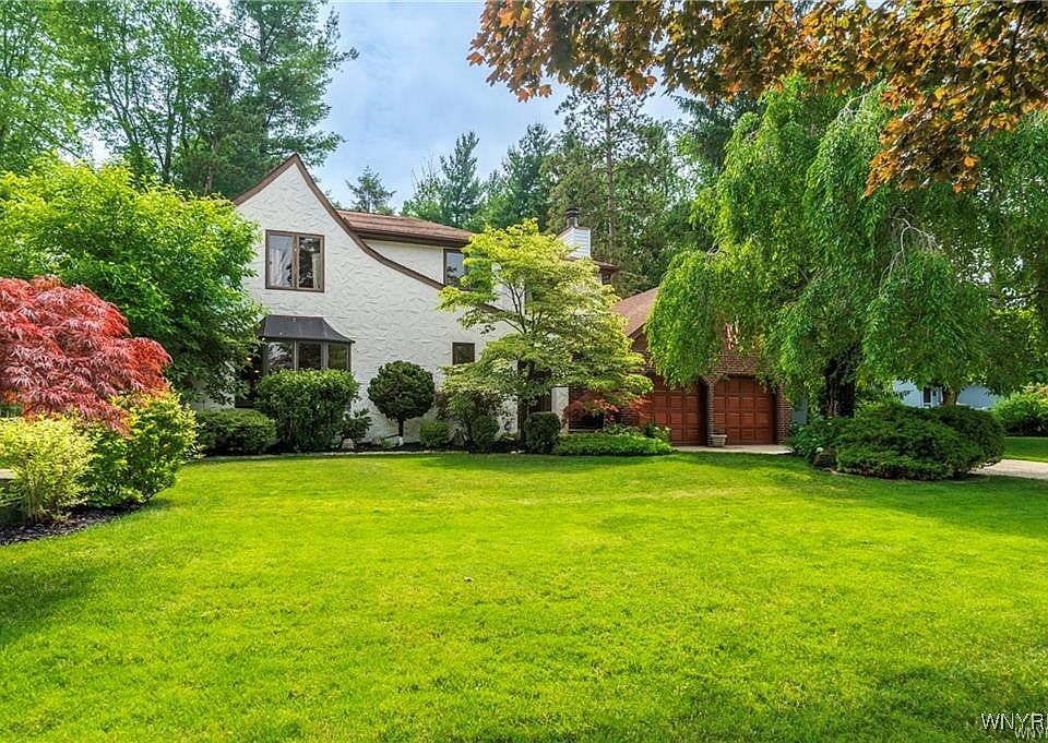 VRP- Owner will consider offers between $425,000 - $475,000 or higher. Come and see this *FRESHLY PAINTED* OVER 2,700 sq ft home in Williamsville Schools! Enjoy a park-like, meticulously maintained yard with a spacious deck, stamped patio, trellis, and shed. Entertain in the huge great room addition with wet bar and sliding doors exiting to your picturesque outdoor space. The eat-in kitchen features granite countertops and all appliances, and opens to a large dining room, living room and home office-gleaming hardwood floors throughout. The bright primary suite impresses with cathedral ceilings, skylights, huge windows overlooking the backyard, a massive walk-in closet, and a spa-like bath with dual sinks, two-person whirlpool tub, and shower. Three additional spacious bedrooms and a full bath round out the second floor. Additional storage available in the clean, dry basement. Updates include roof (11 yrs) with heating cables and skylights, two furnaces and AC units (10 & 6 years old). This is the perfect blend of space, location, and serenity.