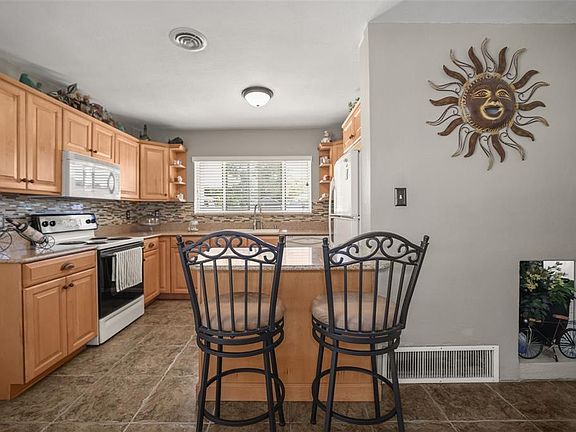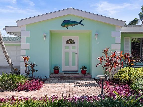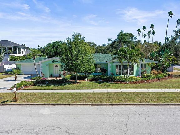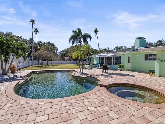 Live the Dunedin Dream — Pool Home Steps from Edgewater Drive, Without the Flood Zone Risk! Welcome to your own slice of paradise in the heart of Downtown Dunedin, just one street from Edgewater Drive and the sparkling waters of St. Joseph Sound. Here, you can enjoy the beauty and coastal breeze without the worry of flooding — this home is not in a flood zone! This 2-bedroom, 2.5-bath pool home sits proudly on a spacious double lot, surrounded by lush tropical landscaping and a brand-new white vinyl fence (2025). A new roof(2025), along with a 2019 A/C and water heater, offer peace of mind for years to come. Inside, the home radiates warmth and character. The vaulted ceilings with shiplap accents create a bright, coastal atmosphere, while the open layout flows beautifully for entertaining. The brick-and-wood fireplace becomes the heart of the living space, framed by large picture windows that overlook your private backyard oasis. The kitchen features solid wood cabinets, matching appliances, and plenty of prep space — perfect for hosting family and friends after a day on the water. Both bathrooms have been tastefully updated, and the spacious primary suite includes built-in storage for effortless living. Step through the back door into your tropical retreat, complete with a sparkling pool and spa, surrounded by paver patios and mature palm trees — ideal for sunset gatherings and starry nights. The oversized 625 sq. ft. two-car garage is an extension of the home’s style and quality, featuring epoxy flooring and even a half bath with epoxy floors, making it perfect for hobbyists, artists, or golf cart enthusiasts. Beyond your doorstep, the Dunedin lifestyle unfolds — walk, bike, or golf cart to the Pinellas Trail, boutique shops, local breweries, and waterfront restaurants. Catch a Toronto Blue Jays Spring Training game at TD Ballpark, or toast the sunset from the historic Fenway Hotel. Every day here feels like vacation — infused with charm, community, and coastal calm. This is more than a home — it’s a Dunedin way of life. Come see it for yourself and fall in love with this rare downtown gem.