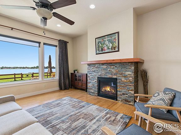Windsor Lake front property with a wall of windows in the living room and kitchen to ensure you can always enjoy the view! Enjoy the open living concept with all of your necessary ammenities on the main level: the primary bedroom with an on-suite 5-piece bathroom and lake view, laundry room, office space and a spare bedroom. The kitchen provides ample storage with an additional pantry and a gas stove for all of your cooking needs. Head downstairs to a large finished basement with two additional bedrooms, a full bathroom, a potential theatre room, and large additional living room for hosting holiday gatherings. Find comfort in the newer furnace and tankless water heater as we get set for fall and winter. This home is nestled in a quiet neighborhood, backed up to the lake, a green space and a walking path, and is exactly what you are looking for in your next home!