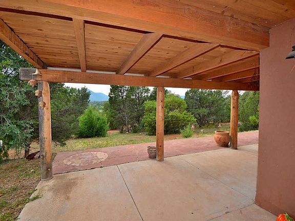 Rural lifestyle in Pecos, NM. just minutes from Santa Fe you can enjoy the serenity and privacy of a mountain hideaway, nestled in the trees on 1.52 acres. This home has 4 bedrooms, 2 full bathrooms, a covered portal for pleasant outdoor living, and a workshop. The home was constructed in 2006 and has a long lasting Pro-panel steel roof, saltillo tile flooring, kiva fireplace with fireplace insert, open concept floor plan.The kitchen has gas cooking and granite countertops. Shared well, and propane gas for cooking.The energy savings from a 5040 watt grid tied active solar system and a wood-burning fireplace insert to keep your utility bills to a minimum while keeping you warm and cozy on those cold winter days and nights.