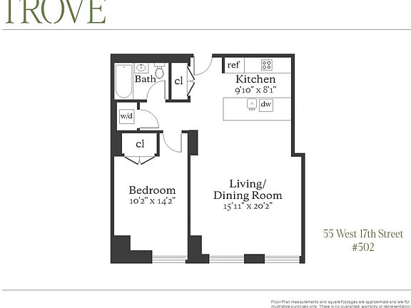 Located at 55 West 17th Street, Residence 502 is a turnkey one-bedroom, one-bath home offering sophisticated design and modern convenience.