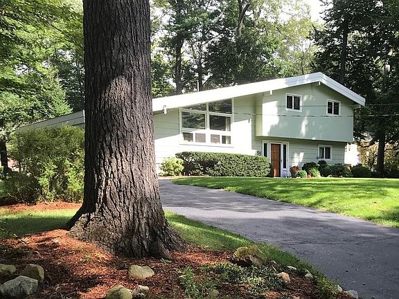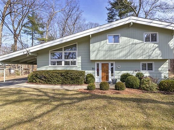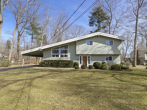 Well maintained contemporary multi level home. Foyer leads to the family room, updated half bath plus a den or playroom with double sliders overlooking gorgeous pachysandra & rhododendron plantings. Ascend to the living room filled w/natural light from picturesque window, brick hearth fireplace adorned with white architectural beam vaulted ceiling & gorgeous hardwood flooring that opens to the formal dining room & kitchen with breakfast bar, white cabinetry & tile backsplash. Retreat to the 3 bedrooms on the 3rd floor with hardwoods & vaulted beam ceilings in addition to the full bathroom. Entertain on the large deck overlooking beautiful wooded backyard. Additional features: Laundry w/ample storage in unfinished basement, 50 Yr shingle roof (2013), new chimney liner/damper (2018), updated 200 AMP electrical (2019), New Eljen Septic (2020), carport to shield snow, great commuter location, award winning schools! Back on Market - buyer sadly laid off from work/can no longer purchase