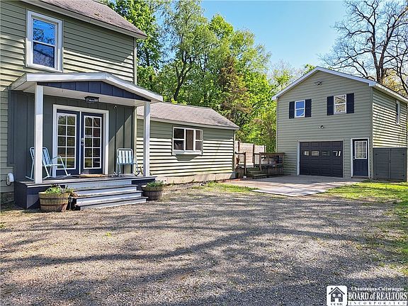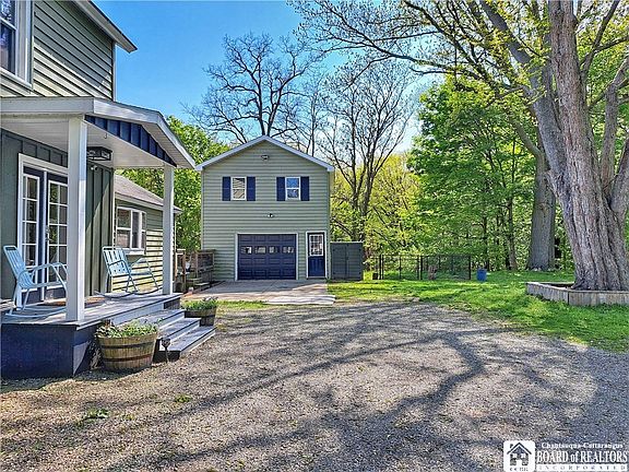 This 3 bedroom (easily 4 bedrooms), 2.5 bath home is located at the very end of a quiet dead-end street in a beautiful park-like setting. Within the last 3 years, it has been ripped down to the studs and completely renovated. Windows, plumbing, flooring, drywall, LED lighting - you name it, it's all been done! As soon as you walk into the kitchen, your eye is drawn to the vaulted ceilings and overall openness of the kitchen, which has a clear view into the living room. The large eat-in kitchen has been beautifully updated with quartz countertops, stainless steel appliances, plenty of cabinet space, and a breakfast bar. There is also a walk-in pantry for additional storage. The inviting living room includes an electric fireplace and has french doors that open up to the side porch, which overlooks a truly serene, picturesque view. The primary bedroom is located on the first floor as well, which has a walk-in cedar-lined closet and a full en-suite bathroom with a walk-in tiled shower that has a built in shelf and seating. Conveniently located between the living room and primary bedroom, there is a half bathroom which doubles as the laundry room. Upstairs, you'll find the other 2 bedrooms, along with a "bonus room" that could be used as a 4th bedroom, office space, hobby room, etc. There is also another full bathroom on this level with a beautifully tiled shower and plenty of closet storage. This home also features a large, dry basement where you'll find a newer tankless water heater. As if it couldn't get any better, the outside of the home has just as much to offer. If you enjoy nature, you'll truly enjoy the private deck and yard. The deck has a sliding gate that can be closed to fully enclose the partially fenced portion of the yard and there's even a creek that runs behind the home. The 2-story garage has electric and provides plenty of space for parking and storage and the second floor could even be finished for whatever you see fit. The extra large driveway provides room for additional multi-vehicle parking. Prime location close to parks, playgrounds, shopping, restaurants, and so much more in and around Fredonia and within an hour of Buffalo and Erie.