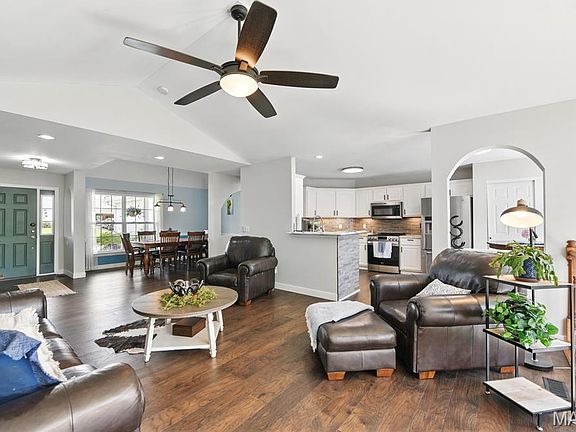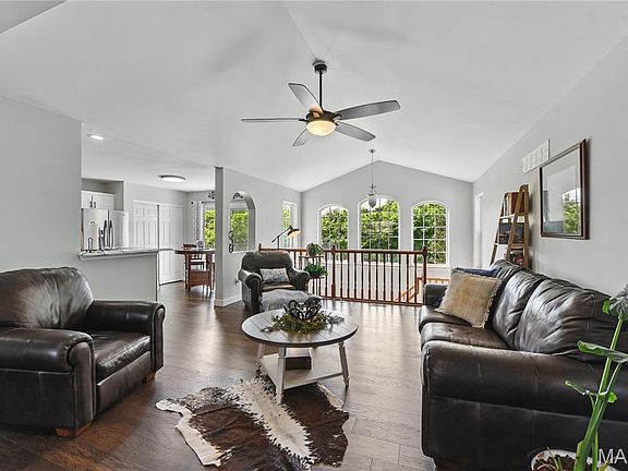 Discover peaceful country living in this beautifully updated & well maintained 4-bedroom, 3-bath split-bedroom floorplan ranch. The lot alone is a rare gem—tucked at the end of this quiet street in a peaceful neighborhood, it backs to trees and a pasture offering unmatched privacy & scenic views. Built in 2005 with extensive upgrades, it features vaulted ceilings, new hardwood floors, a modern kitchen with quartz countertops, & 3 spa-like remodeled baths. The walk-out basement boasts a large rec room, media room, bar, 4th bedroom or office, & more. Recent updates include: roof, deck, fresh paint, upstairs flooring, kitchen & appliances (minus fridges), all toilets, all lighting, landscaping, plus the AC was recharged in 2024.