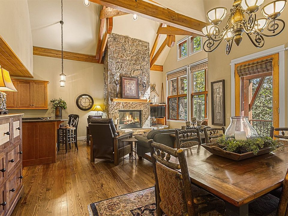 Nestled in a private, quiet wooded setting, this intimate enclave of just 10 luxury townhomes offers a rare combination of seclusion and convenience. This spacious 2,358 sq. ft. end-unit is fully furnished and turnkey, located in coveted Zone 1 Breckenridge where rental licenses are available. With 3 bedrooms, 3.5 baths—including a large primary suite and two additional en-suite bedrooms—there’s room for everyone to relax in comfort. High, beamed ceilings and expansive windows fill the home with natural light, while recent upgrades to all appliances, HVAC, and the private hot tub ensure peace of mind. Just a 200-yard stroll to the Snowflake Trail for easy ski-in/ski-out access and complete with a heated two-car garage, this property is the perfect Breckenridge retreat in time for ski season.