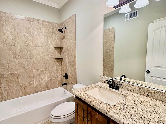Welcome home to this spacious 6-bedroom, 3-bathroom gem, thoughtfully designed for modern living! This exceptional property features a popular split floor plan with an open-concept living area, perfect for entertaining. The gourmet kitchen boasts sleek, solid surface countertops, S/S appliances and flows seamlessly into the main living space. Three generous bedrooms are located downstairs, including one that could serve as a private office or nursery. Ascend the staircase to find three additional bedrooms upstairs. Step outside to your private oasis. The backyard is fully enclosed by a privacy fence and features a lovely covered patio, ideal for outdoor dining or relaxation. The home also includes practical upgrades like a 2-car garage, fresh interior paint, charming cedar accents, dual water heaters, and two separate HVAC systems for zoned comfort. Enjoy a short, convenient commute from this fantastic location! Owner/Agent