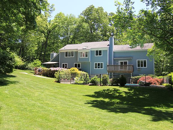 This spacious 5-bedroom Colonial is beautifully sited on 1.76 acres of professionally landscaped property featuring a free-form Gunite pool and loads of privacy. Step inside to nicely scaled rooms, vaulted ceilings, hardwood flooring, an updated kitchen with stainless steel appliances, and a very special guest/nanny/in-law set-up with private entrance and deck complete with electric awning. Meticulously maintained and conveniently located this home is a winner!!