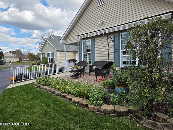 Welcome to Country Walk at Lake Ridge, a highly sought-after 55+ community in Whiting. This Devon II model offers a spacious, open-concept layout with wide doorways, ramp access, and a huge rear yard. Inside, you'll find 9-foot ceilings, crown molding, recessed lighting, and a bright kitchen with 42'' cabinets and gas cooking. The primary suite features a large walk-in closet and private bath. A guest bedroom, laundry room with washer and dryer, and gas-forced air heating complete the home's comfort. Enjoy peaceful mornings or summer evenings on the extended patio with awning overlooking the tranquil nature setting. Residents of Country Walk enjoy a beautifully maintained clubhouse with gym, billiards room, in-ground pool, and a full calendar of social activities -your happy place.
