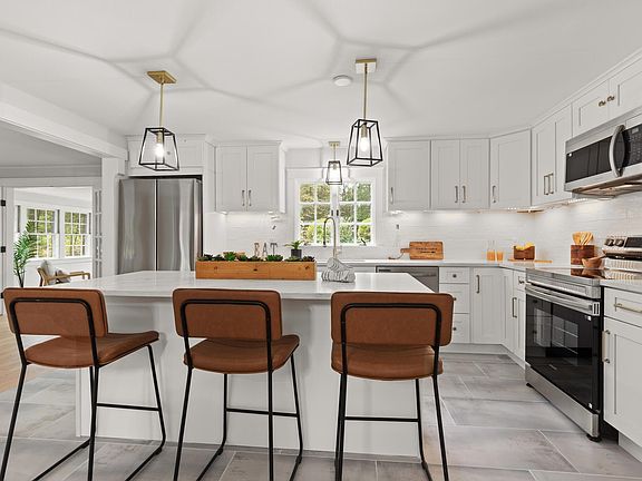 Welcome to 55 Woodridge Road! This beautifully renovated Colonial blends classic charm with modern updates, offering the perfect home for today’s lifestyle. Step into the front-to-back living room, filled with natural light and anchored by a cozy wood-burning fireplace. The first floor also features a fully renovated kitchen with an inviting island, an eat-in dining area, a formal dining room with exposed beams, a home office, renovated bathroom and a fabulous three-season sun porch, perfect for relaxing or entertaining. Upstairs, you’ll find four generously sized bedrooms with gleaming hardwood floors and a full bath. The lower level provides a spacious bonus area—ideal for a family room, playroom, or additional office space. Outside, enjoy a beautifully landscaped yard with mature plantings and a sparkling inground pool—perfect for relaxing or entertaining. Located in a sought-after neighborhood, this home is close to shopping, schools, and offers quick highway access. Truly a move-in ready gem!