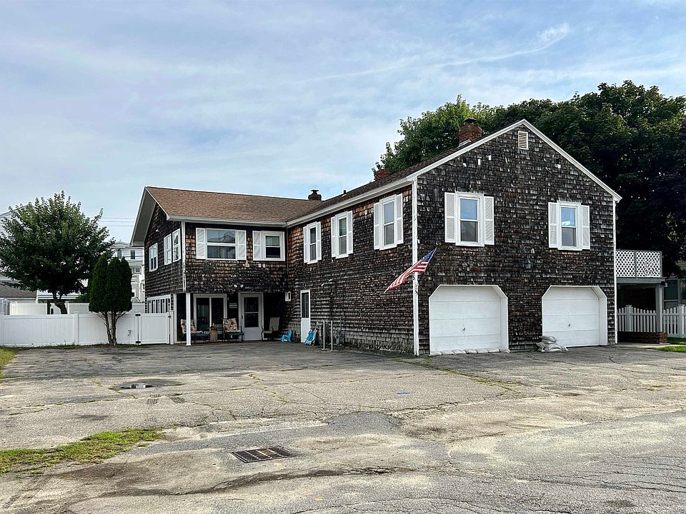 Welcome to 55 Woodstock Street located in Hampton Beach Sun Valley. Duplex w/one of the larger warranty deeded lots at the beach w/75 ft of frontage & 100 ft deep. Owner occupied lower level unit & upper level income unit rents for $3000 a week w/good rental history. The public beach access is at the top of the street at the 5ft ROW entry walkway to sandy beach & the Atlantic Ocean just 6 houses away. Enjoy the seabreeze as it rolls down the street. Walk on the sand for miles going south along the beautiful coastline. Public water. Septic System. The duplex sits to the east side of the lot providing tons of parking! 1st floor unit has a very large tile three season sunroom, 2 bedrooms, large living room, kitchen, 3/4 bath w/laundry area & direct access to a 2 car garage. 2nd floor has 5 bedrooms, 2 baths, fireplaced family room, fireplaced living room, sunroom, kitchen, dining room, bonus room. This unit has access from 3 rooms to a deck 10X26+24X5+10X16+/- perfect for entertaining or sitting under for a shaded patio area. 50 gas shared hot water tank area in the garage. The natural wood shake exterior embraces the coastal beach vibe. This home would be great for a large group of family or friends to all be together yet affords privacy between units. Grass yard & patio area. So much potential. Home heated by a forced hot water natural gas heating system w/multi zones. 2 car garage. To be sold mostly furnished. This home has been in the family for almost 30 yrs. A MUST SEA!