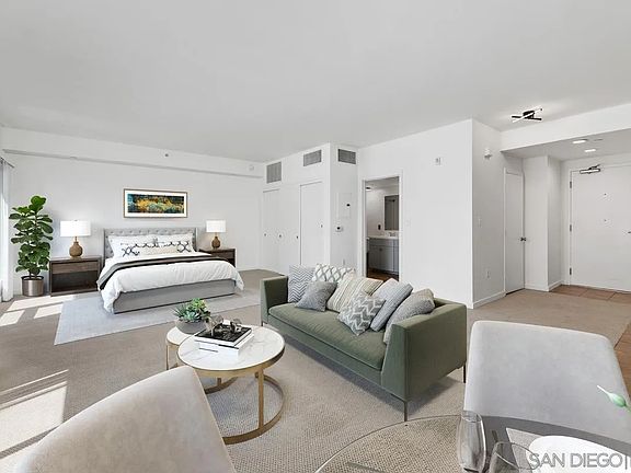 Welcome to this stylish and refreshed corner-unit condo at Element in East Village! Move-in ready and filled with natural light, this beautifully updated home features an open floor plan, floor-to-ceiling windows, and a modern kitchen with granite countertops. The unit has just been updated with fresh paint, upgraded kitchen and bathroom cabinets, new hardware, new light fixtures, a new bathroom medicine cabinet, and luxury carpet—giving the entire space a clean, contemporary feel. Additional highlights include in-unit stackable laundry and an assigned underground gated parking space. Element is a secure, pet-friendly community offering fantastic amenities, including a fitness center and a community courtyard with BBQs and a cozy fire pit—perfect for relaxing or entertaining.Situated in the heart of East Village, you are just steps from Petco Park, local coffee shops, restaurants, nightlife, and the trolley for easy transit. Ideal for those seeking vibrant downtown living! FHA & VA approved. Short-term rentals permitted.