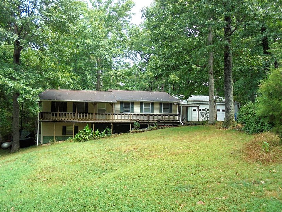 Property adjoins TVA off Beautiful Kentucky Lake!! You can walk to the water and there is only woods and Nature between home and the water. Also has walking trail to the water. Enjoy seasonal Lake Views along with all types of wildlife. Has two car garage/shop area, partial finish basement, deck areas plus three lots.Natural gas is available