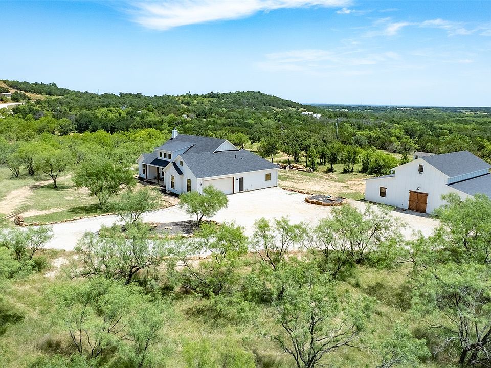 Custom built home on 10 acres with a barn apartment, 2 Brazos River access points, barn, stock tank, chicken coup, storage sheds, dog runs etc. When entering this home you will notice the large living are with a wood burning or propane burning fireplace and to your right in this open concept you will notice the kitchens huge bar with beautiful quartz counter tops with custom cabinets and straight past the living room is a huge, covered patio for entertaining or watching the sunrise just beyond that is a spacious fire pit to enjoy your evenings with. The master bathroom features a walk-in closet double sinks, tub and large shower. On the other side of this incredible home are 2 bedrooms and the office. The 45 x 50 barn, wired for 220 volts has a 14x45 apartment on one side and 14x45 dog kennels on the other in the center section there's a large overhead door for a camper, tractor, trailer ETC. Pasture has native grass, oaks, mesquites, and some cedar and a stock tank stocked with bluegill and catfish. With this HOA you have access to Two parts of the Brazos River in which both have picnic areas, one has a boat ramp. Come take part in this wonderful home in the A rated Santo school district. Sellers agent is related to the sellers.