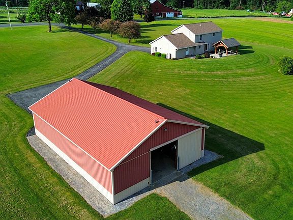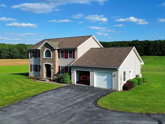 Looking for great views in SCASD with over 25 acres? This exceptional two-story house boasts 3 bedrooms, 2.5 bathrooms, and a 2-car garage. The first floor impresses with hardwood flooring throughout, a gourmet kitchen with an island, granite countertops, and a large pantry. The open concept layout seamlessly connects the kitchen, family room, and dining area, complete with sliding doors that lead to a spacious patio with pavers and a cozy pavilion. Additional features include a first-floor laundry room and an oversized garage with ample storage space. Upstairs, the owner's suite is a peaceful retreat with a walk-in closet and a nicely appointed bathroom. Two more generous bedrooms and a full bath complete the upper level. And for those looking for even more space, the unfinished basement offers endless possibilities. This property is a must-see for equestrians, with a 40x60 barn with 4 stables, an outdoor riding arena, and two fenced pastures, all set on over 25 picturesque acres! Property also listed as farm (MLS# PACE2510566).