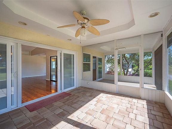 Beautiful Golf home in SANDPIPER GOLF AND COUNTRY CLUB!! 55+ GOLF COMMUNITY!! CENTRAL FLORIDA!! JUST WAITING FOR YOU! OPEN FLOOR PLAN!! MOVE IN READY!! Brick Paver driveway and sidewalk. Custom Built In Closets in both primary and secondary bedrooms, Additional space added to the home featuring a beautiful screened in lanai with an additional space to park your golf cart. Sunny Florida room to capture those great afternoon vibes. Floor plan combines your living room, dining and kitchen with a separate breakfast nook. Sliding glass doors with privacy blinds !! The spacious brick paver lanai is just perfect for early morning coffee or relaxing afternoons. Split floor plan with two bedrooms and two bathrooms. Inside Laundry Room. The coveted Sandpiper community is your Florida resort - golfing all year long, 2 COMMUNITY SWIMMING POOLS, 2 CLUBHOUSES, Shuffleboard, Pickleball , Tennis courts, Library, Billiard Room, Rec Center, RV/BOAT parking (additional fee required), and security. Come schedule your private showing today!! Close to I4, Orlando and Tampa along with nearby shopping and restaurants. HOA FEE covers lawn mowing & edging, security, internet and cable. At the main clubhouse the restaurant is open 7 days a week, and you can also enjoy a sports like atmosphere in the full service bar and lounge!