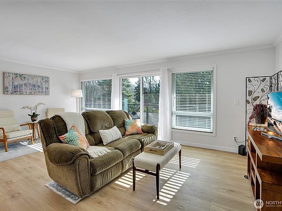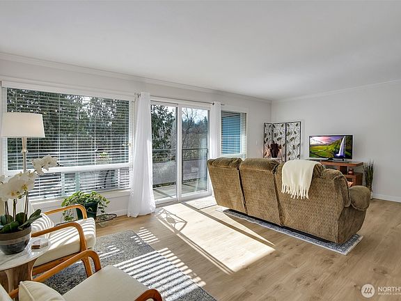 Super cute, impeccable 2 bedroom, 2 bathroom condo close to downtown Edmonds in Highland Park. This condo is in the south building and on the top floor so it’s quiet and peaceful, looking out onto a gorgeous greenbelt. The complex has beautiful landscaping, a heated pool and has been well maintained. Condominium has spacious living room with separate reading nook, dining area, kitchen has stainless steel appliances and granite tile counters. Big primary bedroom has lots of closet space. New flooring installed throughout. Unit has a Washer/Dryer, two storage units, and a large deck. 1 car carport, lobby entrance, and elevator. Pet friendly for up to 2 pets, under 20 lbs each. Close to everything Edmonds has to offer!