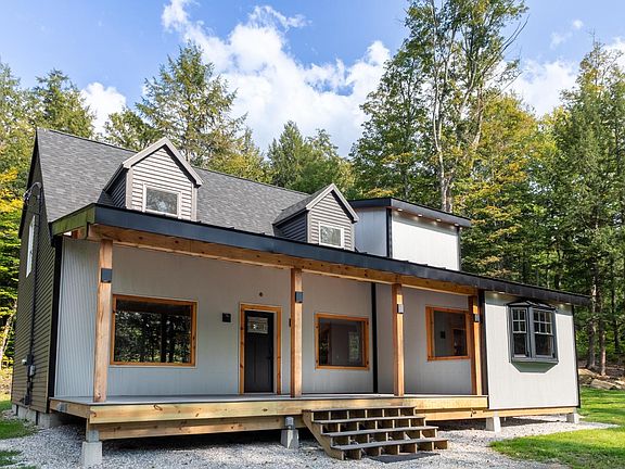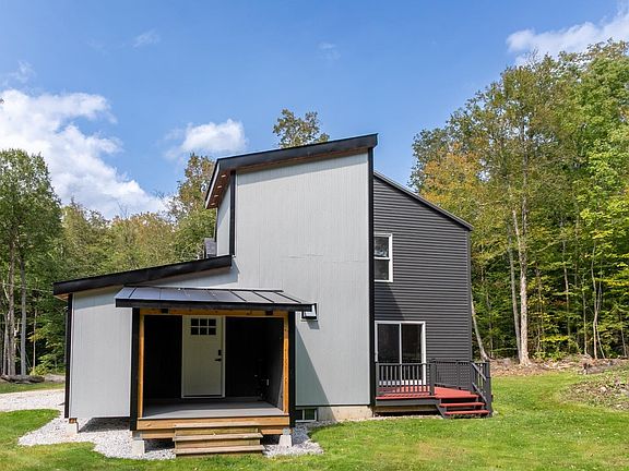 Tucked away on a private two-acre lot in the heart of the Green Mountains and within the Burr & Burton Academy school district, this modern farmhouse offers a peaceful setting minutes from downtown Manchester and adjacent to Manchester Country Club. The main level features an open-concept layout with a beautifully designed kitchen at its center - rich dark cabinetry, Caesarstone quartz countertops, heated tile floors, stainless steel appliances, exterior venting exhaust hood, and a large peninsula with seating for three. A sunny breakfast nook with oversized windows adds a casual dining space, while the living and dining areas flow easily for everyday living or entertaining. A first-floor bedroom and full bath provide flexibility for guests, a home office, or single-level living. Upstairs, the spacious primary bedroom with custom walk-in closet shares a full bath with the second bedroom. The partially finished basement provides versatile flex space, ideal for a home gym, playroom, or hobbies. Three porches extend living outdoors: a covered front porch with extensive lighting options for the right vibe, a partially enclosed cooking porch with gas hookup, and an open rear porch perfect for enjoying the natural surroundings. With heat pumps throughout (including the basement), energy-efficient windows, and thoughtful upgrades, this home is ready for its next chapter.