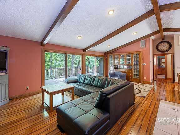 Expansive 6-bed, 7-bath Ada estate on 3 private acres with in-law quarters, a carriage house, and luxury amenities. Offers over 4,100 sq ft with 13 rooms including a theater, two fireplaces, and a finished lower level. Features three kitchens—two in the main home and one in the in-law suite—ideal for entertaining or multigenerational living. The main home has a 4-stall garage; the carriage house includes an oversized 3-stall garage. Relax on the wraparound deck with a built-in hot tub, surrounded by mature trees. A backup generator provides peace of mind. Minutes from Ada Village, Forest Hills schools, trails, and the Thornapple River.