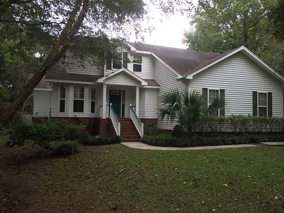 Two story single family home. Large master bedroom downstairs with walk in closet. Two very large bedrooms upstairs. Vaulted ceiling Family room with fireplace, eat-in kitchen, dining room. All hardwood and tile downstairs and new carpet upstairs. Walk-in attic with tons of storage. Large wooded, 1/2+ acre, very private wooded lot with deck overlooking pond. Two car garage and additional space to park boat/other vehicles. Pool, tennis courts, clubhouse and private deep water boat landing in neighborhood provided by owner. Close to beaches and great schools.