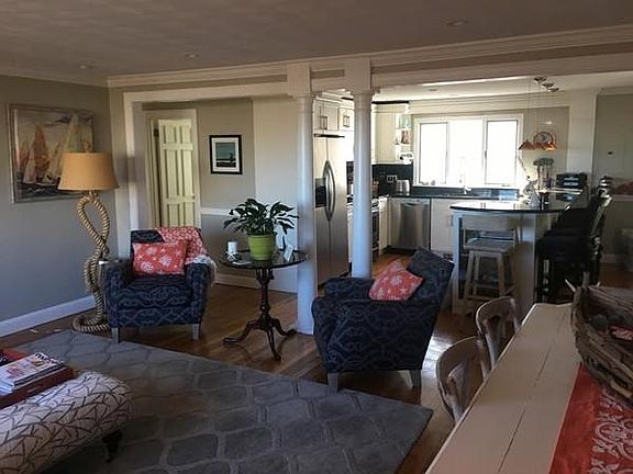 A renovated, 2- Bedroom Condominium in a prime Jerusalem Road neighborhood overlooking Black Rock Beach and Doctor's Island! The outstanding easy living open floor plan features hardwood floors throughout, light-filled rooms, upscale detail and a spectacular kitchen with granite stainless and a big center island wide open to the living spaces.. an amazing setting for everyday living, dinning and entertaining!! The master bedroom has three closets and the second bedroom has one spacious closet. The updated hallway bathroom is nicely appointed and features a tub/shower with glass enclosure. Convent laundry facilities and storage unit in the basement. One garage space plus guest parking. A short drive to the train station and the commuter boat to Boston PLUS beachside living!! A turnkey property, steps to the beach and all the beauty of Cohasset's coast!!