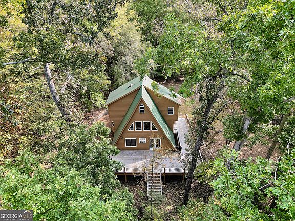 Charming A-Frame Retreat on 10 Private Acres with Jackson Lake Frontage. Nestled on a serene 10-acre wooded lot stretching all the way to the shores of Jackson Lake, this unique A-frame home offers a peaceful escape with endless potential. Enjoy the outdoors from the half wrap-around porch, perfect for morning coffee, evening sunsets, or simply soaking in the sounds of nature. Step inside to a spacious living room filled with natural light, thanks to expansive windows that frame the surrounding landscape. The layout flows into a large main-level library-ideal for book lovers or easily converted into a flexible living space. This home features 2 bedrooms and 2 full bathrooms, providing comfortable accommodations for family or guests. If you need additional space, the unfinished attic is already equipped with a window and closet, making it easy to convert into a third bedroom or studio. With a little imagination and your personal touches, this one-of-a-kind property can truly shine. Whether you're seeking a weekend getaway, a full-time residence, or an investment opportunity, this home has the charm, setting, and potential to make your vision a reality. Call today to schedule your showing!