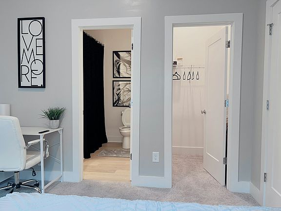 Located on the lower level, this cozy private room is perfect for professionals who want a balance of work and rest. Furnished with a twin daybed, workspace/desk, dresser, and TV, it's ideal for travelers who need a quiet retreat. The private en-suite bathroom includes a full tub/shower combo, and blackout curtains ensure privacy and sleep comfort. With keyless entry, this suite is tailored for travel nurses or guests who appreciate their own secure, functional space.