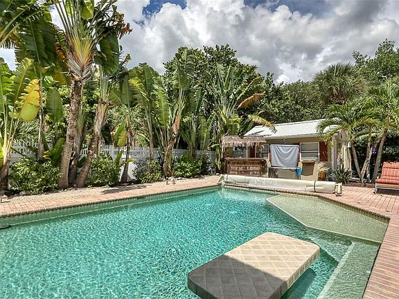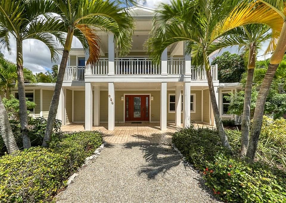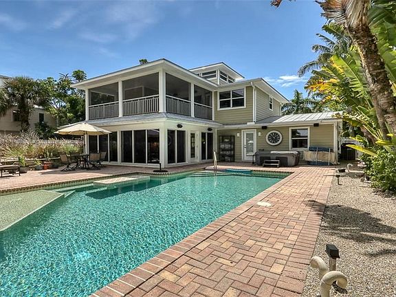 Pristine Palm Island home with deep water dock, with 10,000#covered boat lift, private pool, many amenities and located on a double lot just across the street from the beautiful beach and the Gulf of Mexico. Remodeled with many upgrades which include the metal roof, high impact windows and doors, siding , flooring, wiring, kitchen and baths, A/C and wiring. The kitchen offers stainless steel appliances, gas burners, water fill at cooktop, build in coffee maker, center island and wonderful views. The great room and dining room combination makes entertaining easy, with wet bar, wine refrigerator and extra storage. The second level master suite also includes an office, several covered porches and fabulous water views. The heated private pool offers a sun platform and in-water table. This private yard offers a tree lined circular driving and several sitting areas with pavers and stone. Make this your own private resort, just ready to move into and enjoy, with so many amenities that you'll never want to leave, except to access your very own private beach with deeded access.