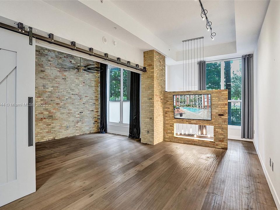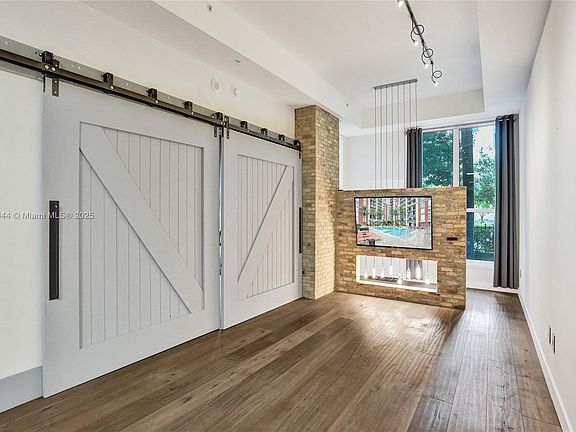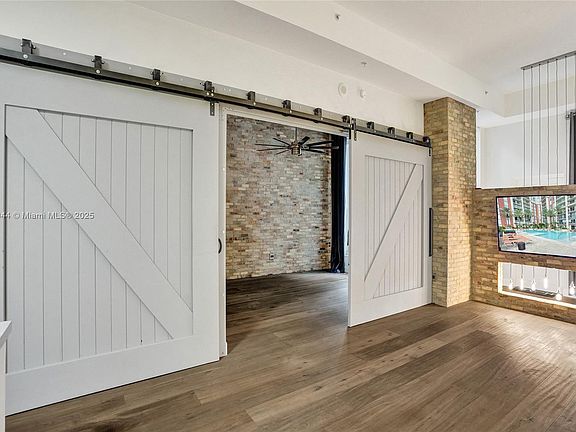 Private direct exterior entryAssigned covered parkingReclaimed brick wallsWide-plank wood flooringCustom barn doors