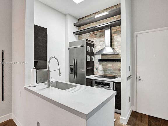 One-of-a-kind 1st floor unit with 12' ceilings in one of downtown WPB's premier buildings. Open floorplan with incredible upgrades including reclaimed brick walls, wide-plank wood flooring, 13' wide custom barn doors (creating a separate sleeping area when closed), concrete counter tops and private direct exterior entry which is perfect for pets. Assigned, covered parking on 1st floor steps from unit. NEW AC. Resort-style, full service luxury building with a 24-hr concierge/doorman, valet, infinity pool, fitness center, sauna/steam/massage rooms, outdoor/indoor kitchens and more! All is included in HOA payment along with exterior ins, water, cable & internet. The Square, Kravis Center, Brightline station and Convention center right outside your door. 1.5 miles to beach. 2 pets-60 lbs max