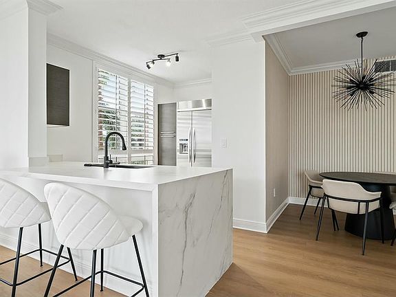 Beautiful updated kitchenQuartz waterfall peninsulaStainless steel appliances